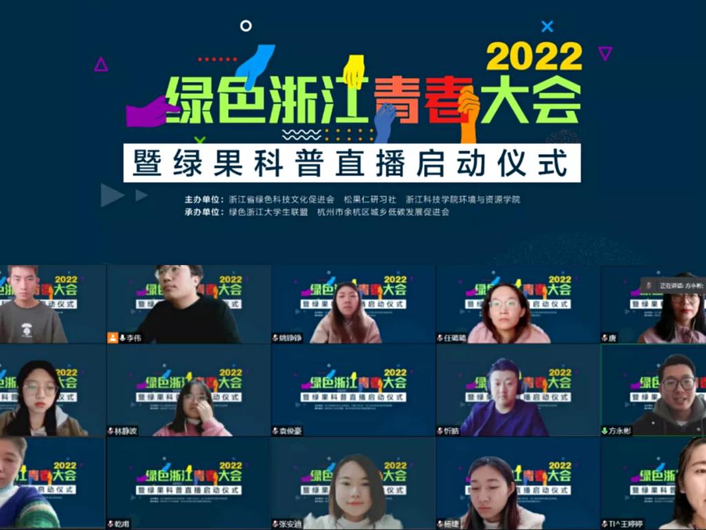 2月27日,2022年绿色浙江青春大会暨“绿果”科普活动启动,来自各高校的400多名青年学子在线参加会议。此次会上,环资学院当选第十七届绿色浙江大学生联盟主席单位。
