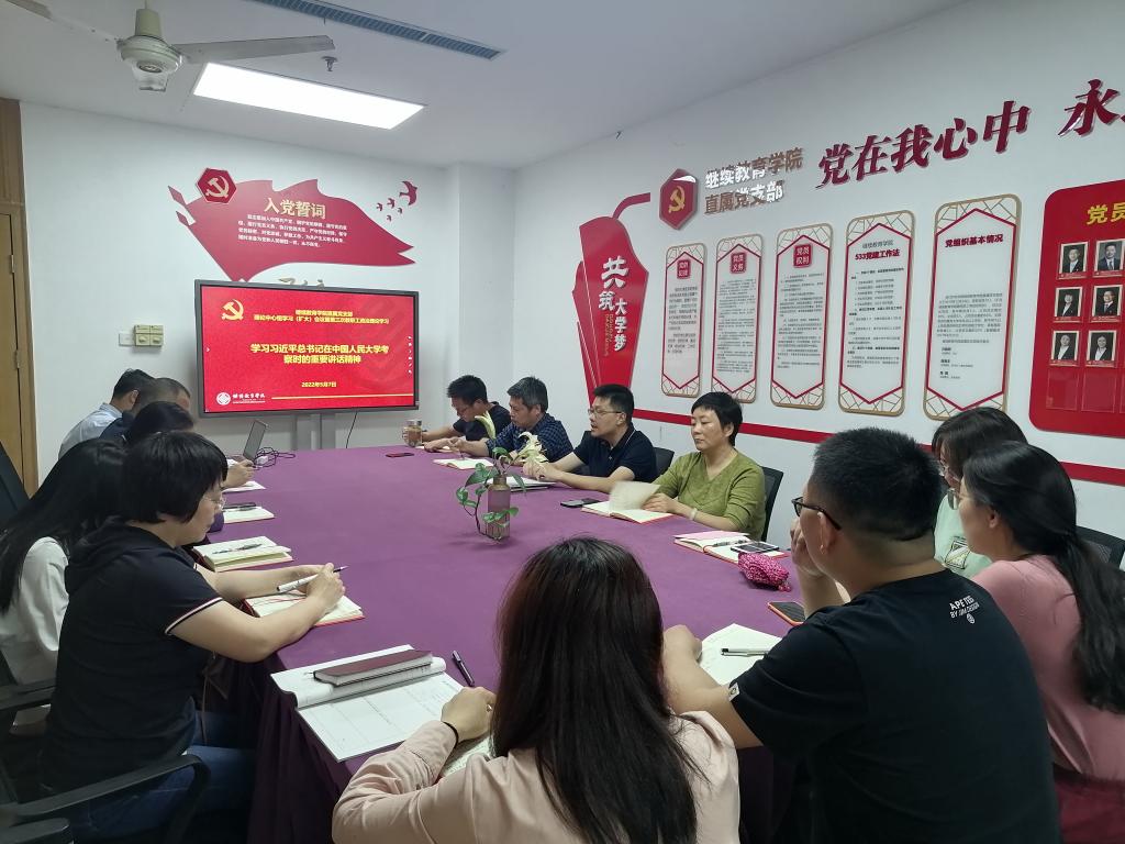 5月7日,继续教育学院直属党支部召开理论学习中心组扩大会,专题学习习近平总书记在中国人民大学考察时的重要讲话精神。院长、直属党支部书记方晓明主持会议并做主题发言。