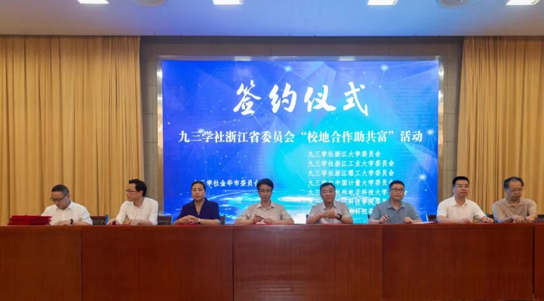 启动仪式上,九三学社浙江省委会、中共金华市委统战部、金华市科技局签订“校地合作助共富”三方战略合作协议。九三学社浙江科技学院委员会与九三学社金华市委签订结对共建合作协议,九三学社浙江科技学院委员会宣传委员王子辉与金华当地企业签署科研成果转化项目。