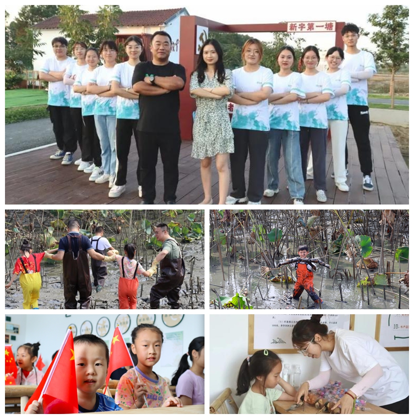 “荷你藕遇”团队充分利用研学活动这个“第二教育课堂”,发展“红色移动课堂”,开展红色研学旅行。国庆节当天,团队成员与孩子们合唱国歌和红色经典歌曲,“我和我的祖国,一刻也不能分割”这句发自肺腑的歌声回荡在荷塘上空。团队通过“红色+生态+乡村体验”的研学形式,助力新宇村实现红色文化与生态产业的一体化发展,培养当代青少年吃苦耐劳、坚韧朴实、不惧困难的品格,是一次生动的德育课程。