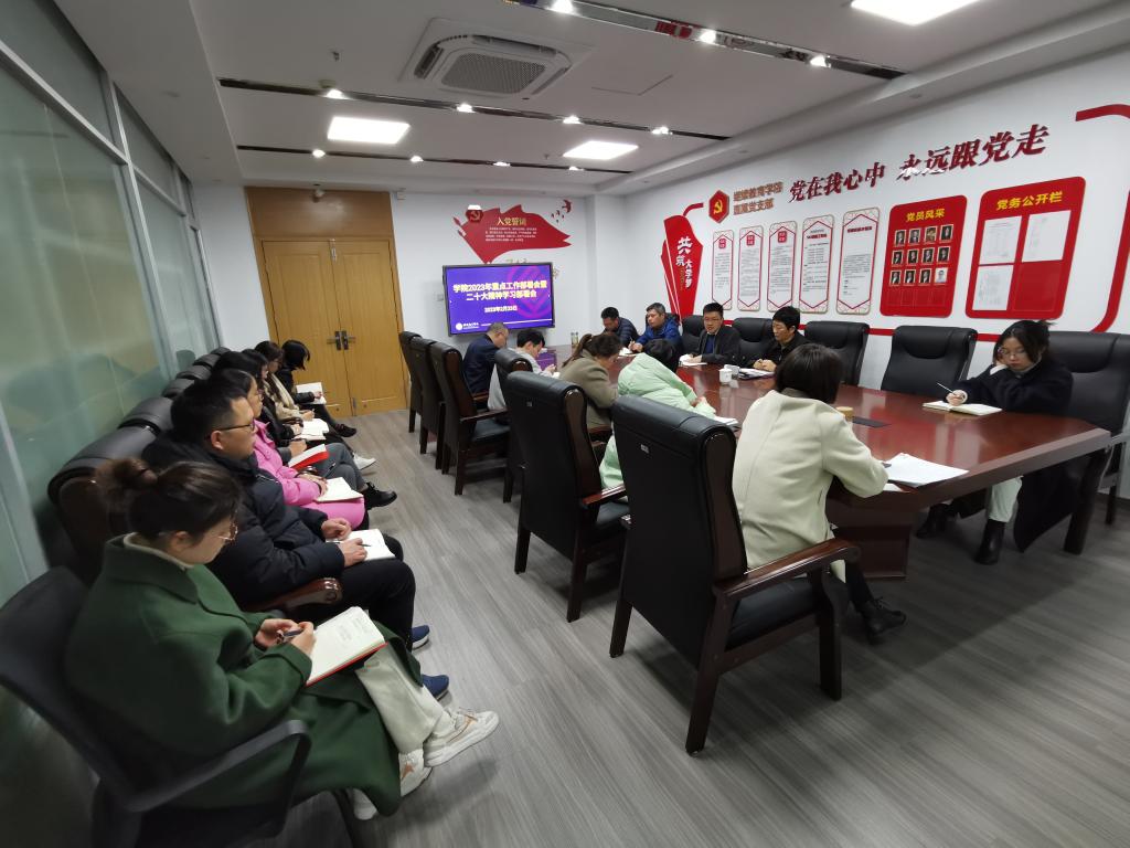 会上传达学校2023年度重点工作部署会暨党的二十大精神集中轮训动员会精神,要求要把贯彻落实党的二十大精神与高标准落实学校、学院年度目标任务紧密结合起来,切实把学习贯彻党的二十大精神的成效转化为推动学院高质量发展的实效。