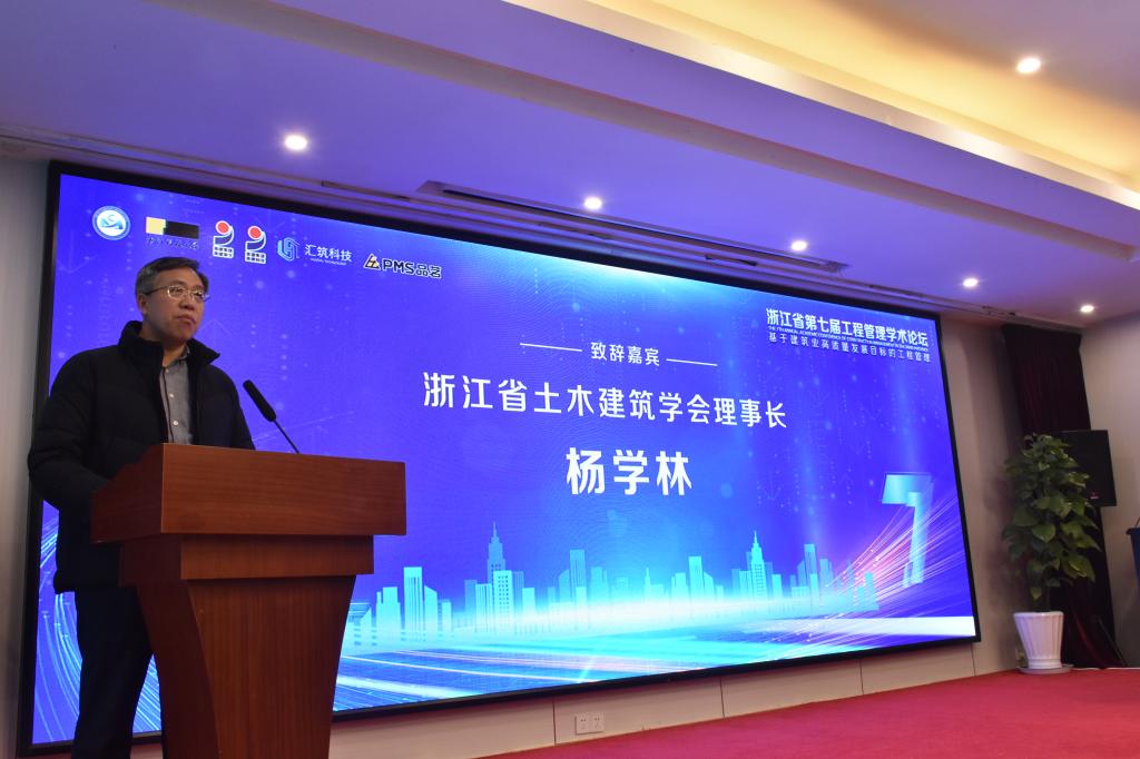 浙江省土木建筑学会、伟德官网建工学院、浙江建投数字技术有限公司、浙江省工程管理学术委员会相关负责人致辞。他们指出,随着经济与科技的发展,抓住建筑行业数智化和绿色化转型机遇势在必行,希望通过本次论坛,进一步推动浙江省工程管理领域的创新和发展。