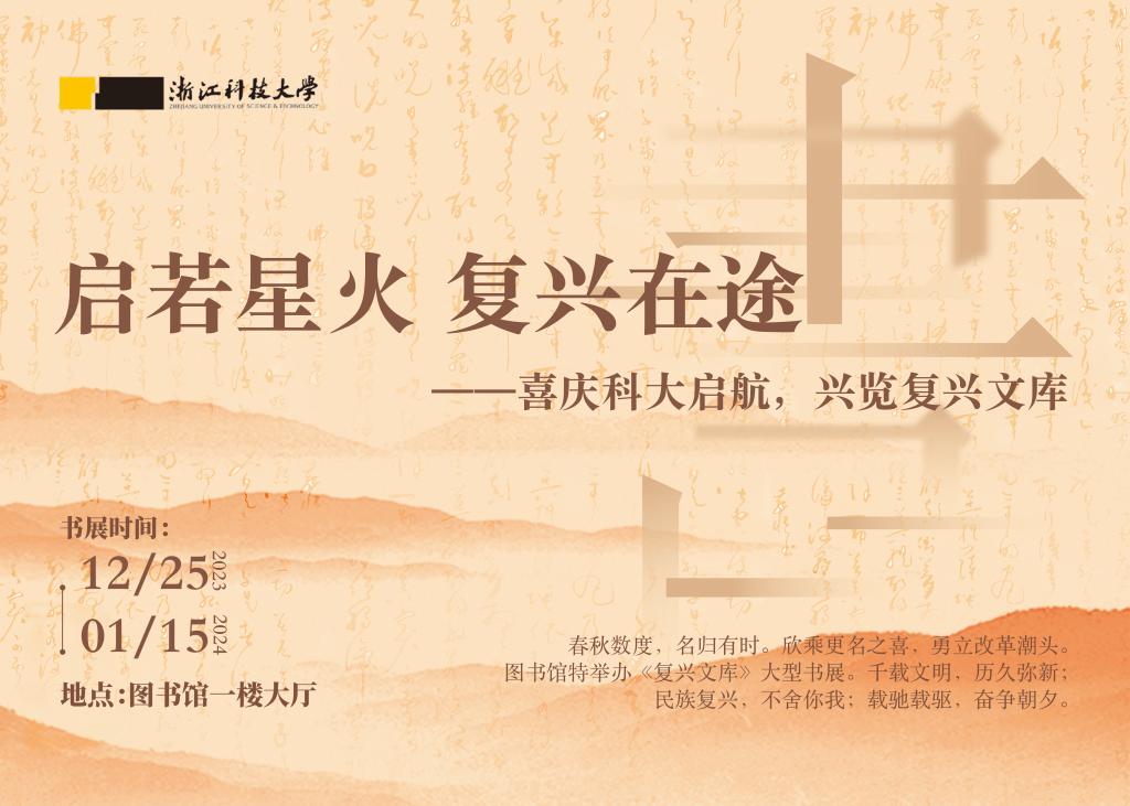 本次展览时间为2023年12月25日至2024年1月15日,展览地点为小和山校区图书馆图东一楼大厅。(图书馆 李海娟)