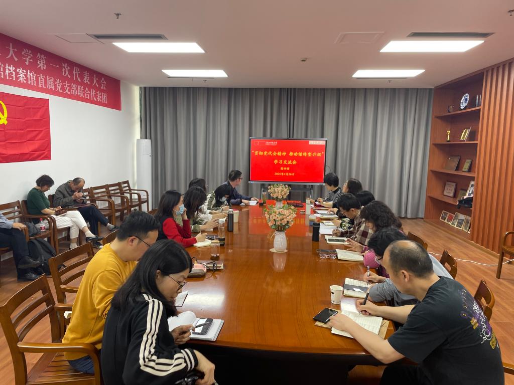 为认真贯彻落实学校第一次党代会精神,助力学校高水平大学建设和高质量发展,4月26日,图书馆档案馆直属党支部组织召开学习交流会,全体党员和馆员参加会议。