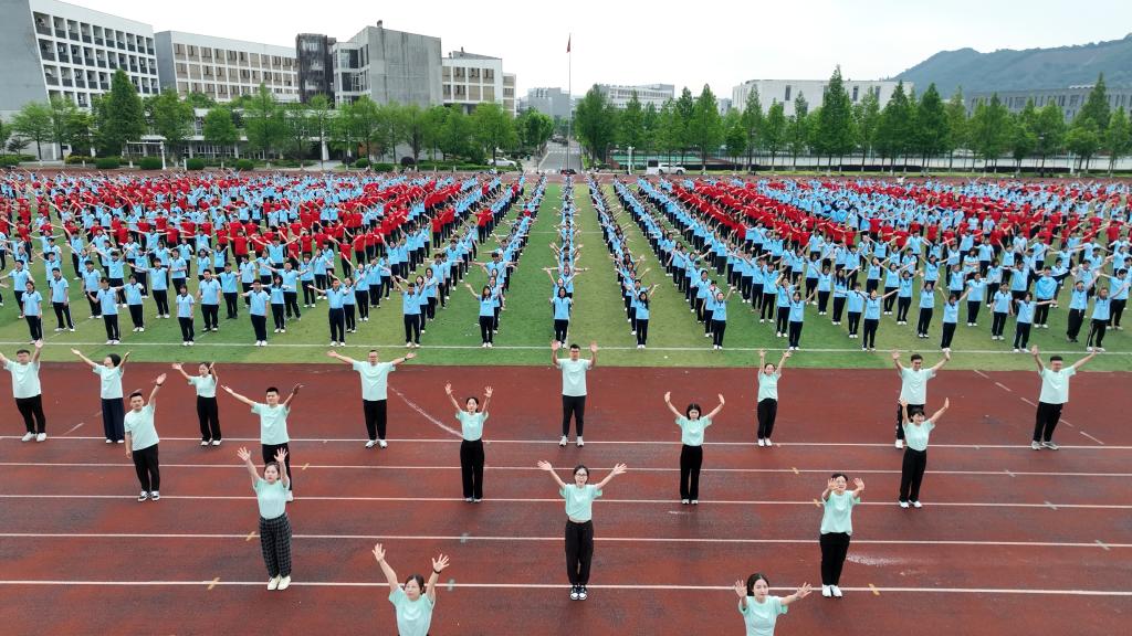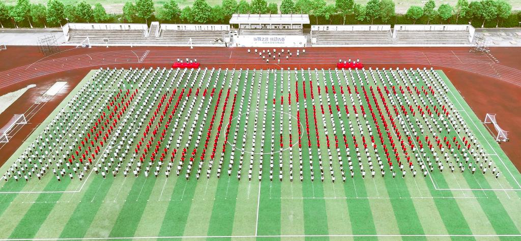 近日,安吉校区举办“以舞之名,悦动青春”大型健身舞活动,全体辅导员与1850余名学生参加。“我和我的国,激荡着同一条脉搏……”健身舞活动在歌曲《我和我的国》中拉开序幕,全体辅导员带领学生一起在操场上排成整齐的队伍,蓝色校服构成的底色铺满绿荫操场,中间身着红色上衣的学生列构成“10年”字样,庆祝安吉校区投入运行十周年。所有人随着音乐的节奏,舞动着青春的舞姿,展现了科大人英姿勃发的风采与昂扬向上的面貌。