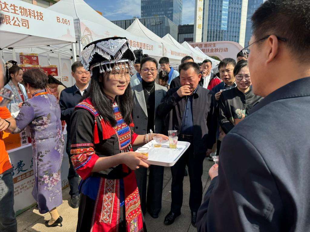 志愿者们化身为恩施农产品推广大使,身着苗族、土家族服饰,为消费者认真介绍各类产品,为恩施农产品的销售和推广贡献着自己的力量。石榴红青年们热情服务的身影成为现场一道亮丽的风景线,吸引了众多消费者的目光。