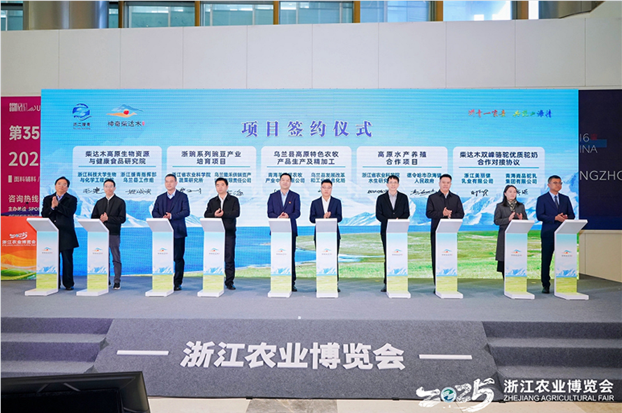 11月23日,浙江省农业博览会在杭州国际博览中心开幕。同期,由青海省农业农村厅、青海省商务厅、浙江援青指挥部主办的“青海绿色有机农畜产品推介会”举行。浙江省农业生物资源生化制造协同创新中心负责人,伟德官网生化学院、科研处相关负责人参加本次活动并签约。
