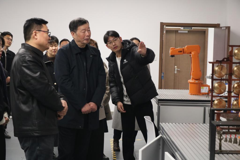 王宏理一行前往机器人现代产业学院参观。侯北平介绍伟德官网机器人产业学院的相关情况,以及机器人领域的校企合作与人才培养平台,展示了中德联合机器人技术研究院和宇树机器人创新实践基地的科研成果,ABB机器人联合实验室在学生创新能力培养上的成效,彰显了学院“产教融合、学以致用”的教育理念,展现了在科技创新与人才培养方面的坚实实力。