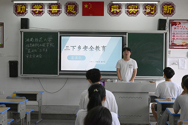 (通讯员 宋宇轩 陈璐瑶)7月5日上午,我院赴怀化市会同县暑期社会实践团(以下简称“蓝溪队”)于会同县岩头小学开展安全宣讲会。