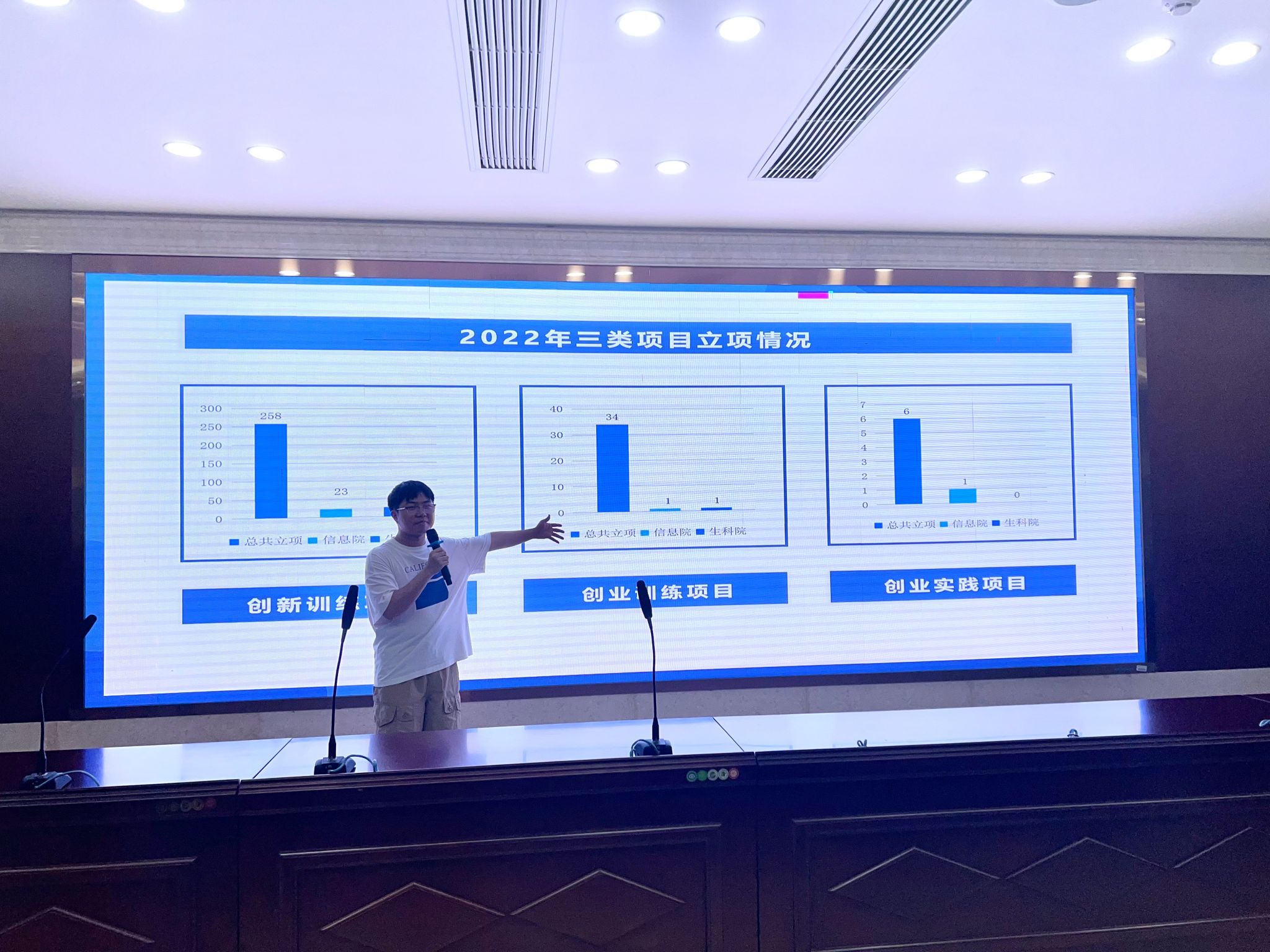 会议伊始,黄强从比赛特点、参赛规则等方面对大创进行了详细的介绍。他结合自己的参赛经历分析了各阶段的难点和注意事项。此外,黄强着重就申报书的书写和项目答辩向同学们分享了自己的参赛经验。他希望同学们用心准备,注重细节的打磨,冷静处理突发情况,并积极主动寻求老师的指导和帮助。最后,他鼓励同学们积极参加比赛,积累经验,不断提高自己。