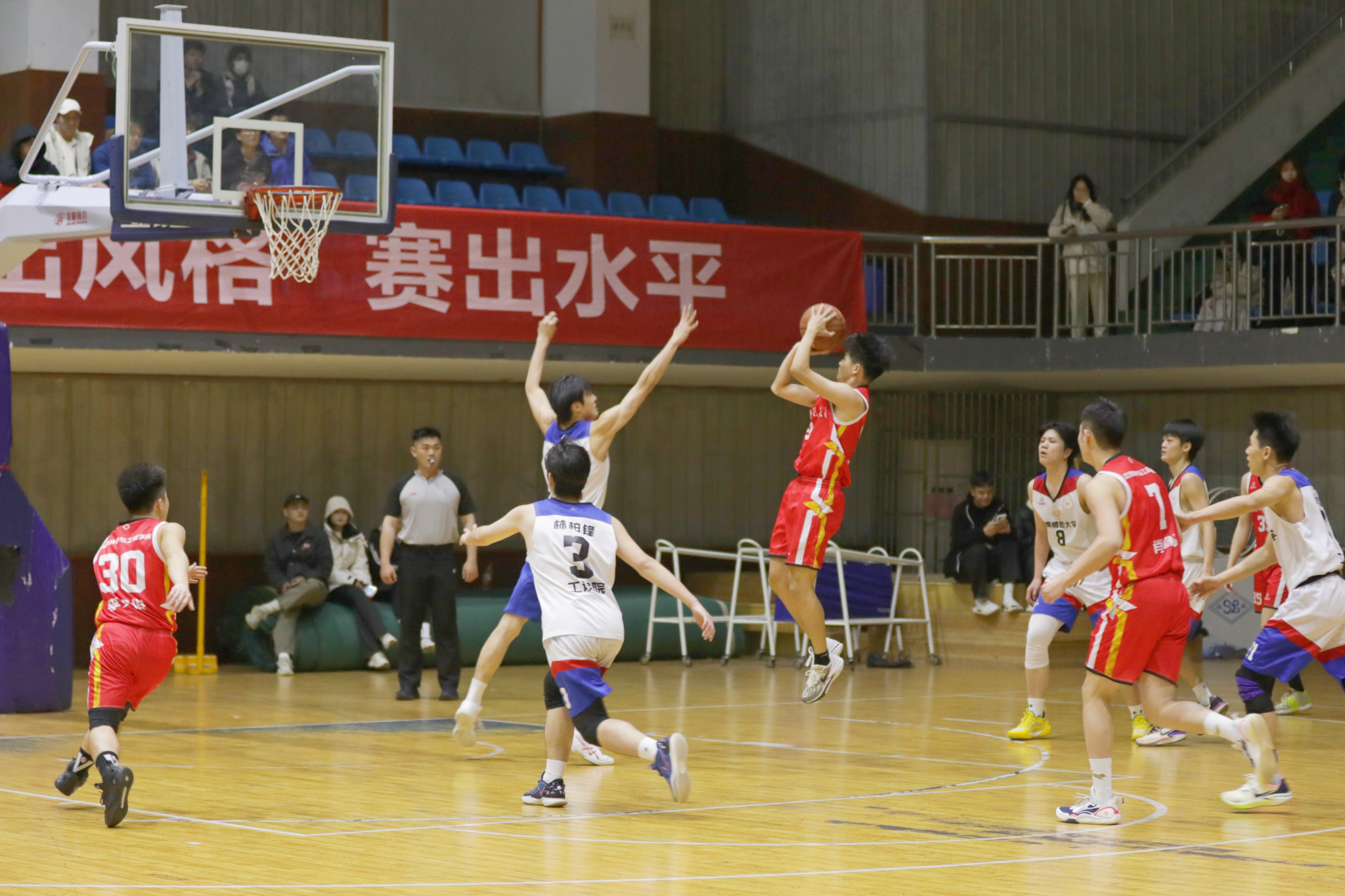 本届校学生篮球联赛,XPJ官网篮球健儿们均展现出高水平的竞技状态。球员们在赛场上热情高涨、奋力拼搏,与其他学院之间切磋了球技,增进了友谊,不仅展现出XPJ官网篮球健儿昂扬向上的精神面貌和运动精神,更彰显出XPJ官网始终贯彻“五育并举”的育人理念,促进学生的全面发展。