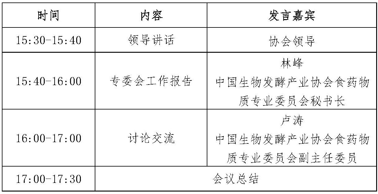 1. 11月14日 15:30-17:30 食药物质专委会第三次主任委员工作会议暨重点企业座谈会