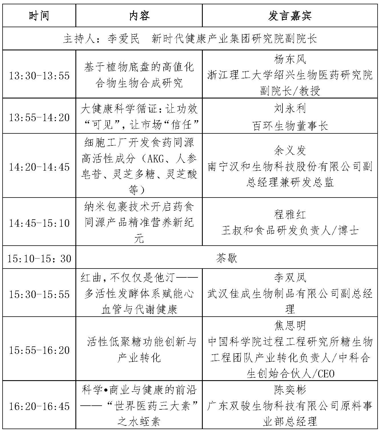 大会拟邀请来自生物发酵、生物医药、食品营养、临床营养、中医药、消费市场等多个领域的权威学者、头部企业代表等40余位专家到会作主题报告。会议分设不同主题的专题论坛,交流探讨食药物质技术创新、发展新机遇和新赛道、法规新进展,共同促进我国食药物质产业高质量发展。