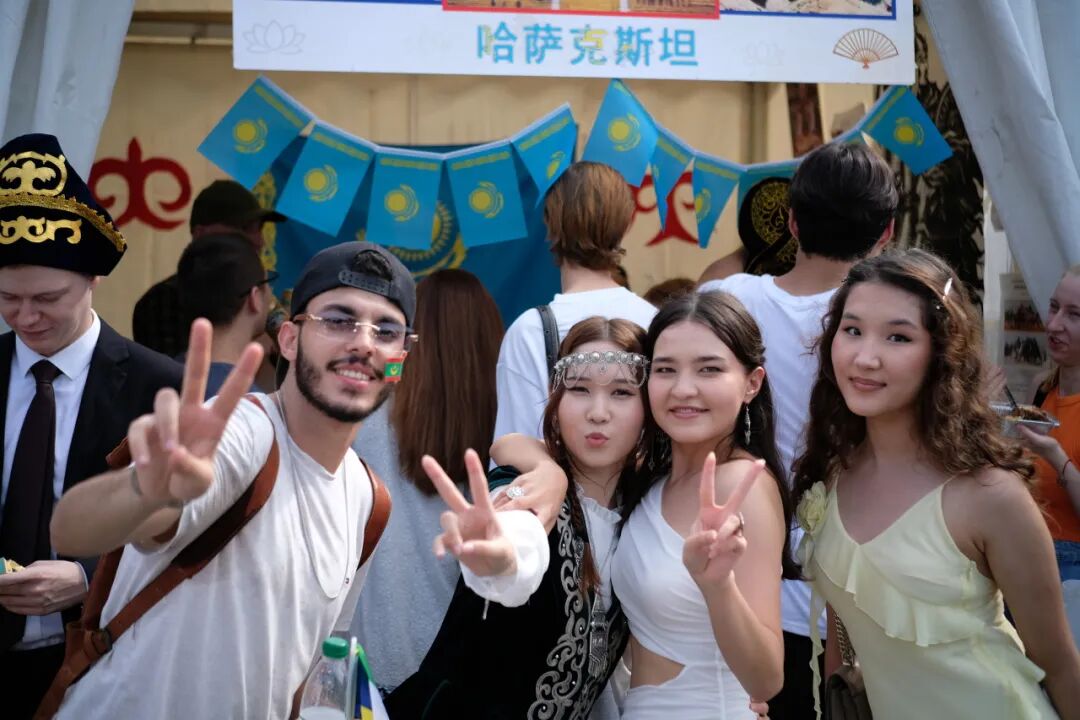 开幕式结束后,30个各具特色的国家文化帐篷同时开放,瞬间将校园变成了“世界文化博览园”。从泰式手标奶茶的醇香,到非洲鼓点的激昂节奏,再到中亚蓝瓷的精美工艺,师生们穿梭于各个展位之间,通过品尝特色美食、体验传统手工艺、试穿民族服饰等互动方式,深度感受世界多元文化的独特魅力。