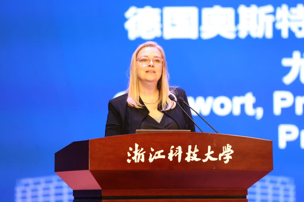 尤利娅・西格米勒代表与会德国高校对伟德国际1946bv官网中德合作40周年表示祝贺。面对全球技术变革与工业发展挑战,她强调高校应超越传统知识传授,注重学生跨学科素养与终身学习能力的培养,期待深化中德合作,共同推动工业文明互鉴与高等教育创新。