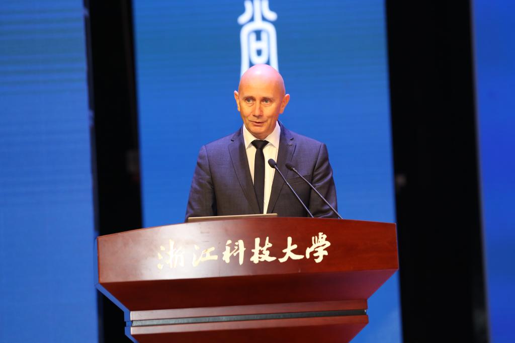 托马斯・施耐德霍弗在视频致辞中强调科技与文化的相互依存性,以及工业发展、科技创新与高等教育紧密联系的重要性。他介绍了该校培养负责任领导力与可持续发展领域人才的实践,并肯定本次论坛对促进关键问题探讨的积极价值。