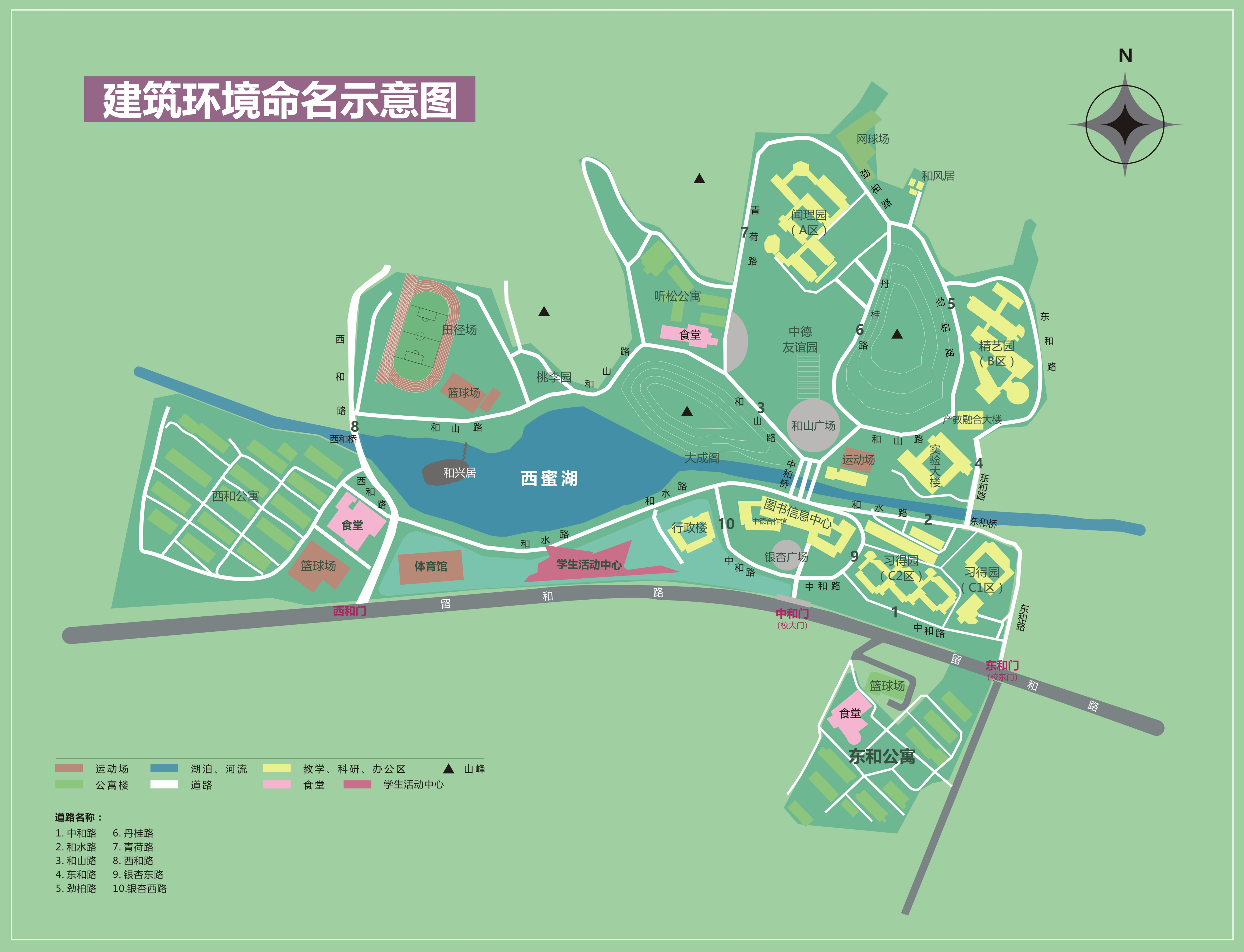 学校于2007年12月6日确定并公布校园建筑物和道路环境命名方案。
